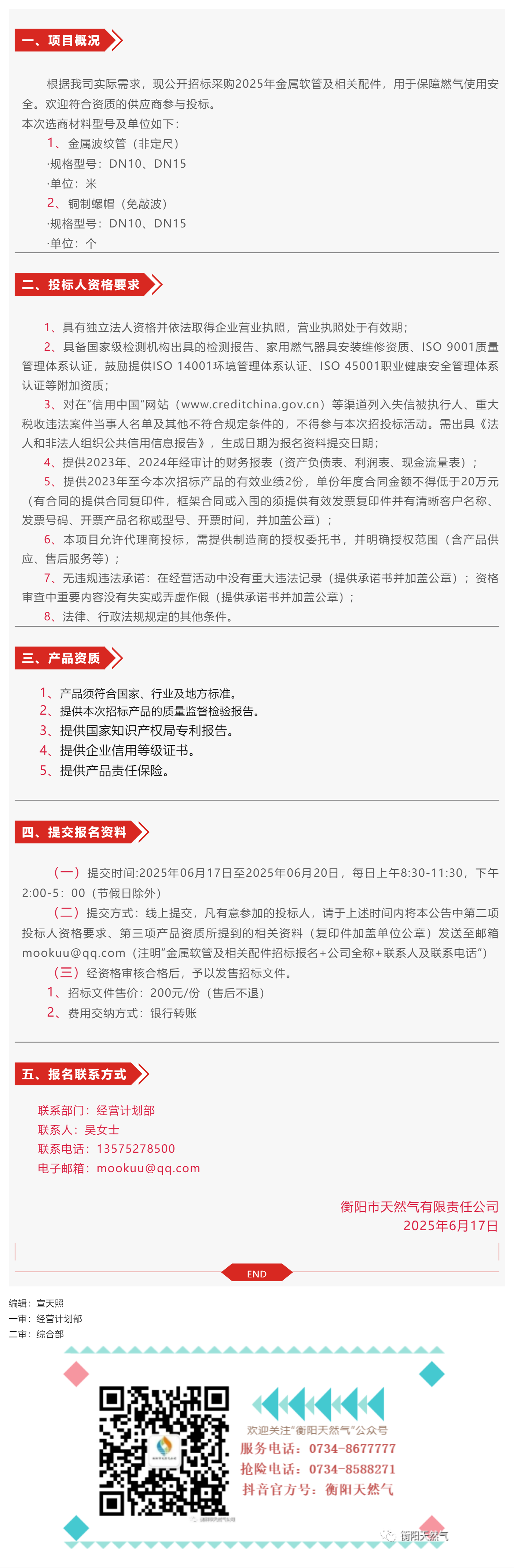 招標(biāo)公告丨衡陽市天然氣有限責(zé)任公司2025年金屬軟管及相關(guān)配件采購招標(biāo)公告